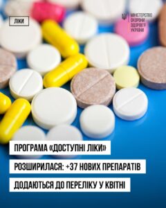 Уже з квітня вона розширюється: до переліку додано 37 нових препаратів у різних дозуваннях, зокрема для лікування серцево-судинних захворювань, цукрового діабету та хвороб дихальної системи.